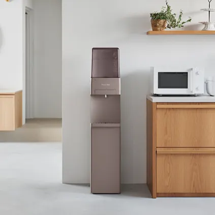 お水ボトルを専用バスケットに入れてスライドするだけなのが特徴的で、お水のセットがトップクラスに手軽です。