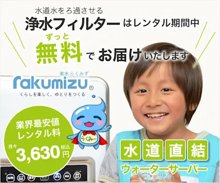 | 期間限定キャンペーン | アンケート回答でデジタルギフト券3,000円分貰える。 | 選べるギフトコード3000円分プレゼント。 | レンタル料が初月無料。 | お水ボトル2本が無料&初月サポート料無料 | ボトル2本無料&解約金0円 | 最大4本無料 |